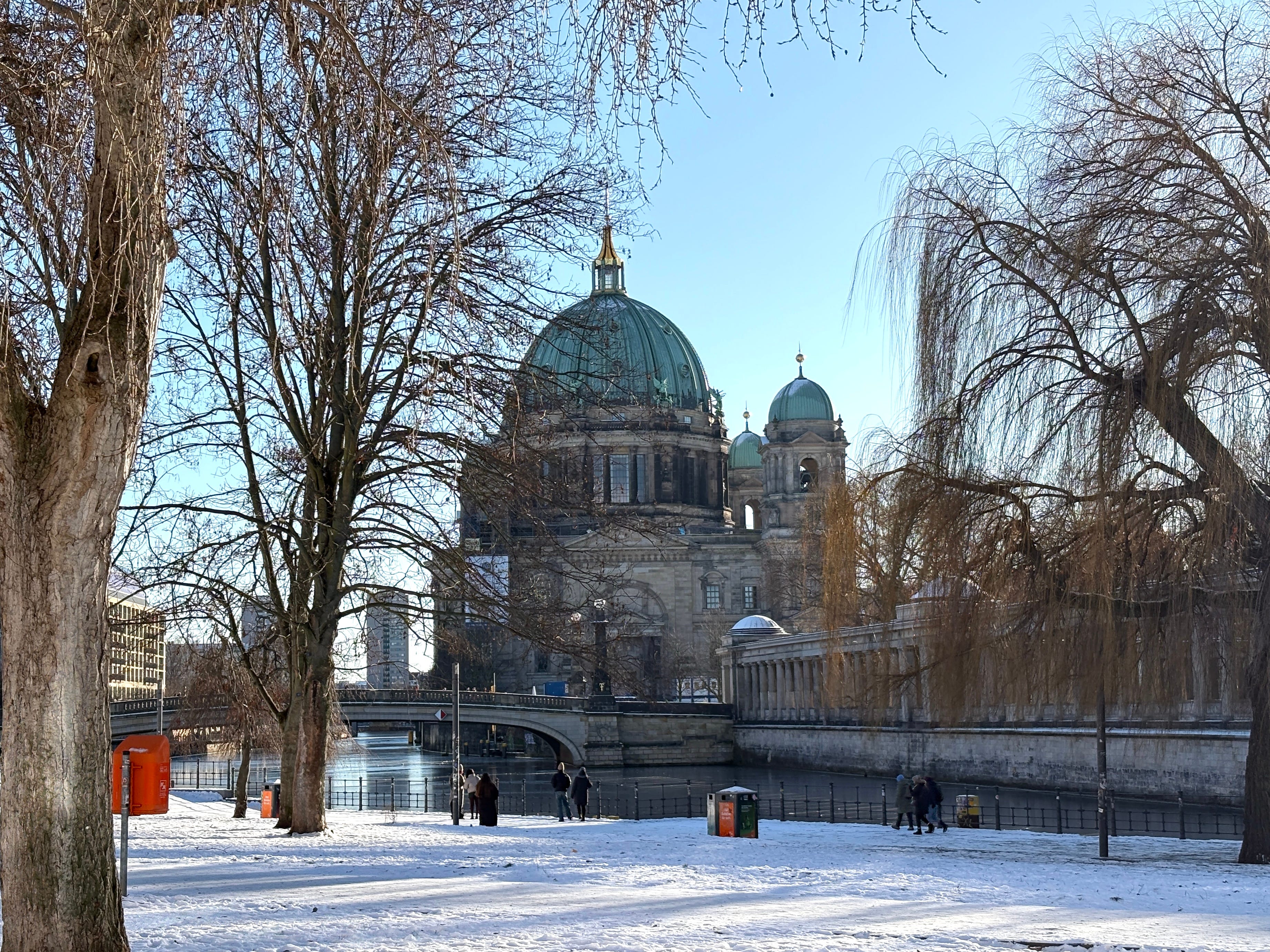 In the park below, under the bare trees, people have already gathered to celebrate Berlin’s second snow this winter. The ground isn’t wearing a snow coat yet, but they are out with their sleds and dogs and fresh bakery buys. I wear my winter jacket and head downstairs too.